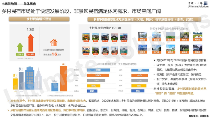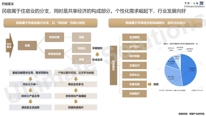 民宿一般是指:利用居民闲置的房源(包括:民宅、饭店、旅社、休闲中心、农庄、农舍、牧场等),作为主人参与接待,为游客提供旅游体验、文化与生产生活方式体验、户外运动检验等相结合的小型住宿设施。我国的民宿大多数存在于农村或偏远郊区,尤其为靠近景区或乡村旅居的地方。这些地区的优势在于:一个是有资源,流量符合民宿的定义;另一个就是有着天然的吸引力,适合游玩、观光、旅居、康养等。民俗发展到现在已不仅仅提供住宿,同时还有了三个细分领域,分别是城市民宿、景点民宿和乡村民宿。