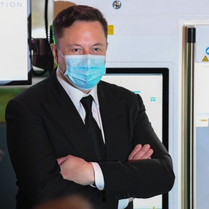 2020年9月2日,在德国柏林,特斯拉和SpaceX首席执行官埃隆·马斯克在一次会议上展示一个疫苗生产装置。