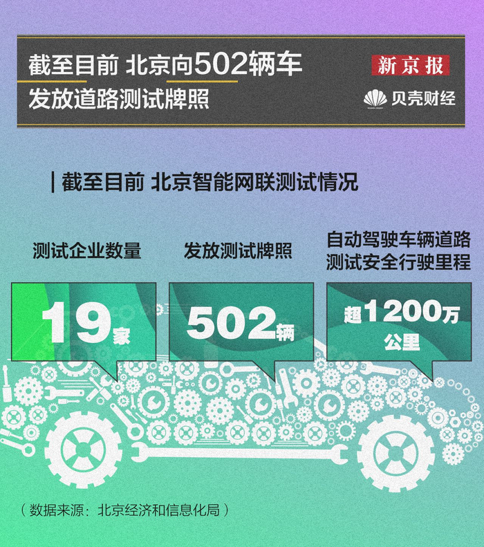 北京市在自动驾驶测试车辆数、安全行驶总里程等方面均居全国前列。新京报贝壳财经记者采访北京经济和信息化局得到最新数据显示,目前北京已为19家自动驾驶企业502辆车发放了道路测试牌照,自动驾驶车辆道路测试安全行驶里程超过1200万公里。
