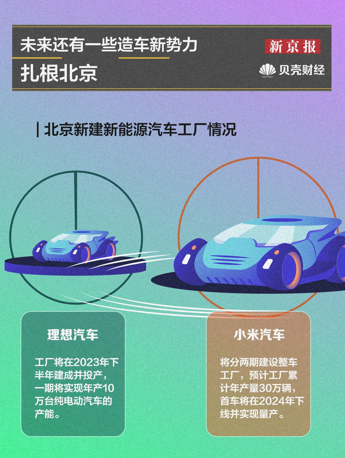除了有北汽集团、北京奔驰、北京现代等传统车企,还有极狐、理想汽车、小米汽车等多家新能源汽车品牌扎根北京。2021年,理想汽车、小米汽车落户北京,分别在顺义区和北京经济技术开发区建设整车工厂。按照计划,理想汽车将于明年投产,一期将实现年产10万台纯电动汽车的产能。