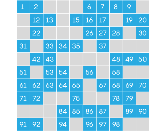 如下图所示,蓝色方格内的数字可以写成两个有理数的立方和;其他则不能。