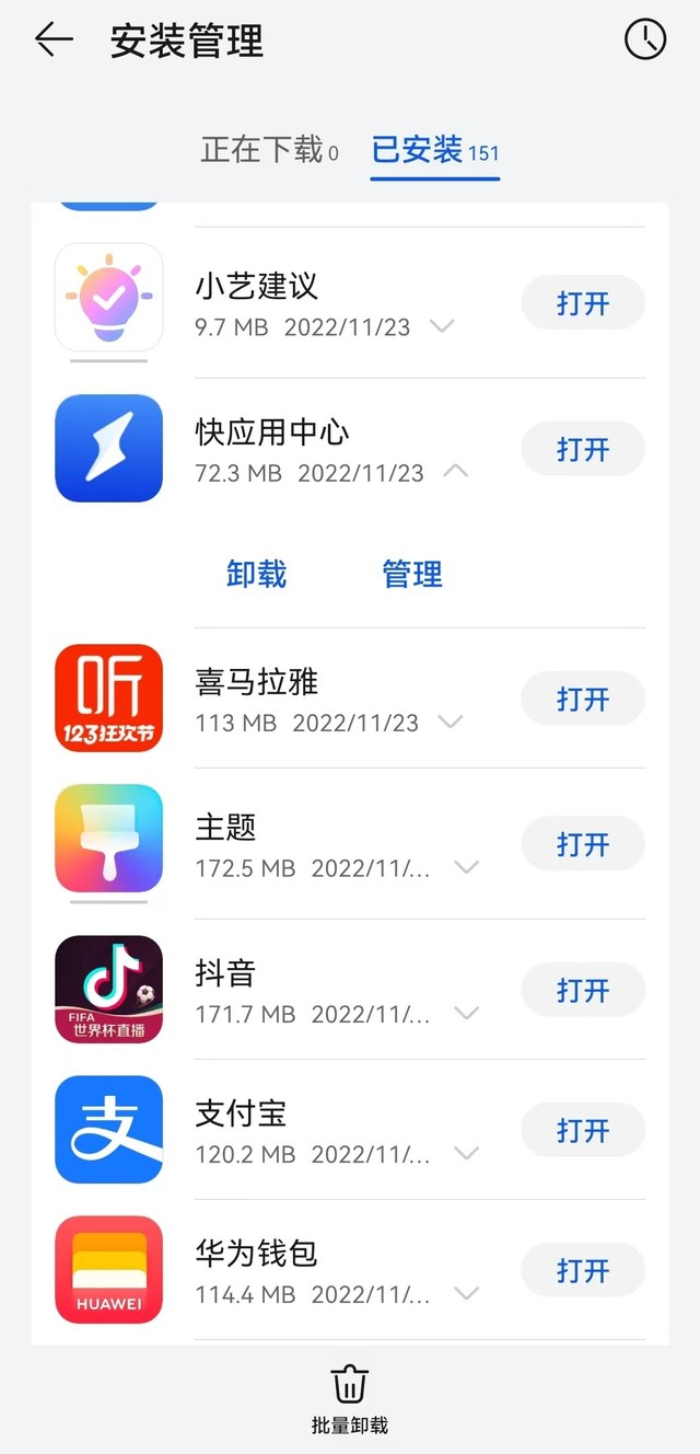 快应用不是手机系统应用,所以可以卸载。以华为手机为例,打开“华为应用市场”,点击我的,打开“安装管理”,选择快应用中心选项,点击卸载就可以了。其他手机也可在“设置”中关闭快应用程序。