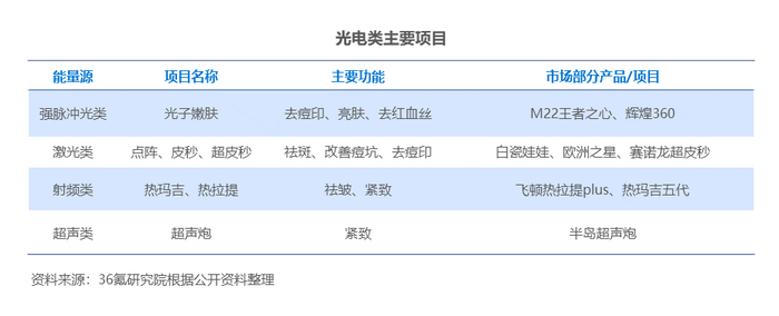 光电类项目指通过不同波长的光波作用于皮肤不同层次,实现抗衰、去痘印、亮肤等功效。光电项目治疗时间短、无创口、安全性高,深受消费者欢迎,热度不断提升。头豹研究院数据显示,2025年光电医美市场规模预计达501.6亿元,较2021年增长65.5%。