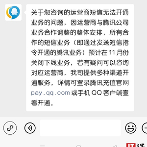 短信不能开QQ会员了,运营商短信开通腾讯相关业务功能下线