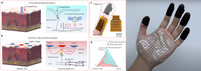 相比之下,电刺激触觉执行器便灵活,能够提供更高的分辨率和更快的响应速度。不过电信号需要数百伏的电压才能穿透高阻抗的角质层,这带来了安全问题。此外,人体皮肤随时间和个人的差异呈现出高度可变性,需要连续校准才能确保触感始终保持在用户的舒适区间。