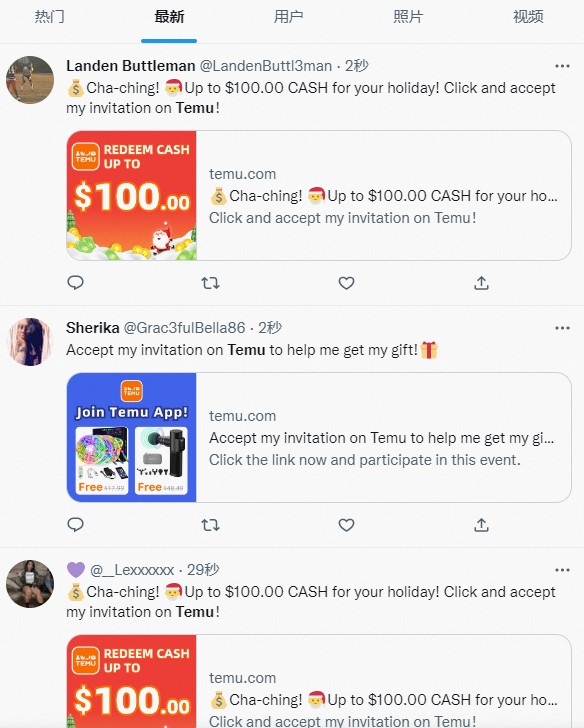 在社交平台发Temu邀请码的海外用户们