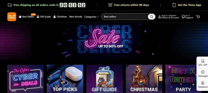 Temu的黑五页面