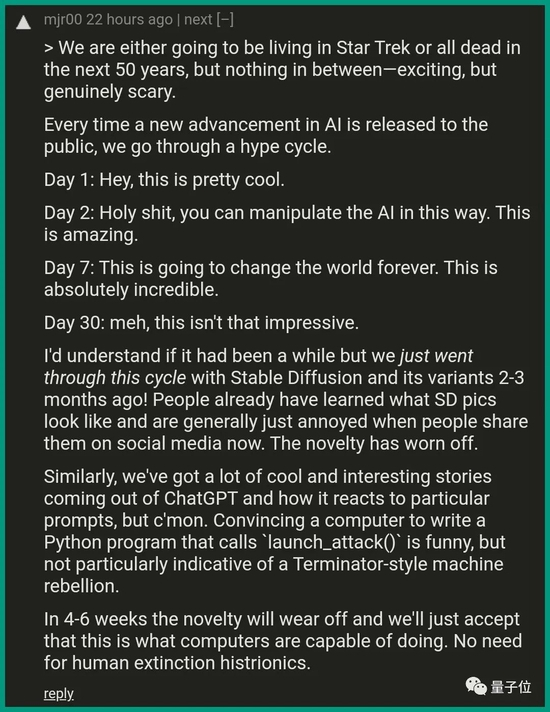 不过也有泼冷水的网友认为ChatGPT的这波热议,只是新AI每次面世的必经过程。