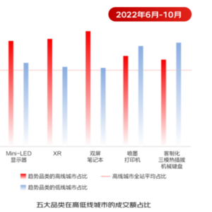 日前京东发布了《2022中国潮电数码趋势洞见白皮书》,数据显示在2022年Q2-Q3季度中,双屏笔记本、Mini-LED显示器等五大品类表现十分亮眼。