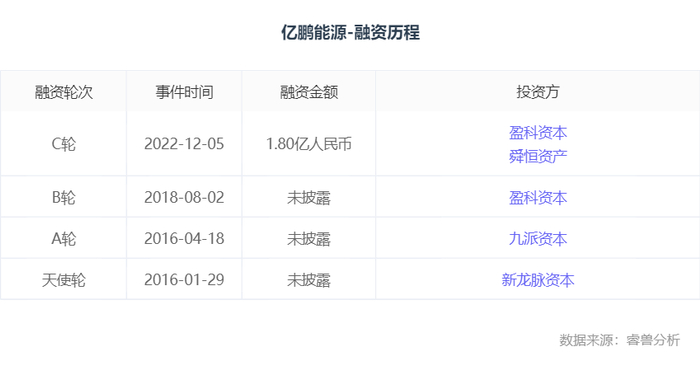 亿鹏能源成立于2014年1月,是一家新能源汽车动力电池研发商,专注于从事新能源汽车用动力锂离子电池系统的研发与设计,旗下主要产品包括锰酸锂电池、纯电动快充轿车电池、并联式插电式混合动力快充电池等。