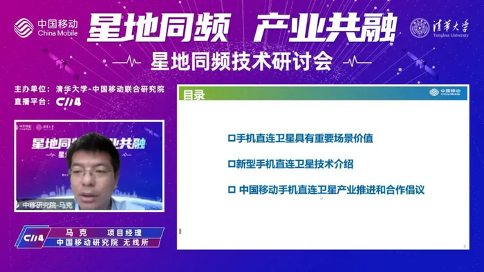 日前,由清华大学-中国移动联合研究院共同举办的星地同频技术研讨会成功召开。中国移动研究院无线所项目经理马克在演讲中表示,手机直连卫星极大拓展了现有地面蜂窝网络的服务范围,可应用于公众应急通信、地面网络补盲覆盖、“一带一路”等场景。