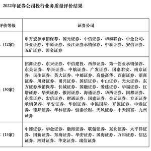 新京报贝壳财经讯(记者胡萌)12月9日,中证协发布了2022年证券公司投行业务质量评价结果,12家公司被评为A类,50家公司被评为B类,15家公司被评为C类。