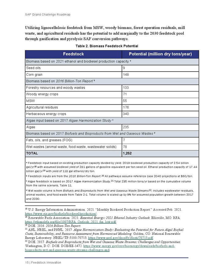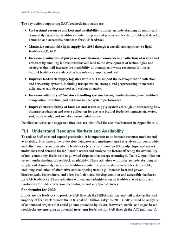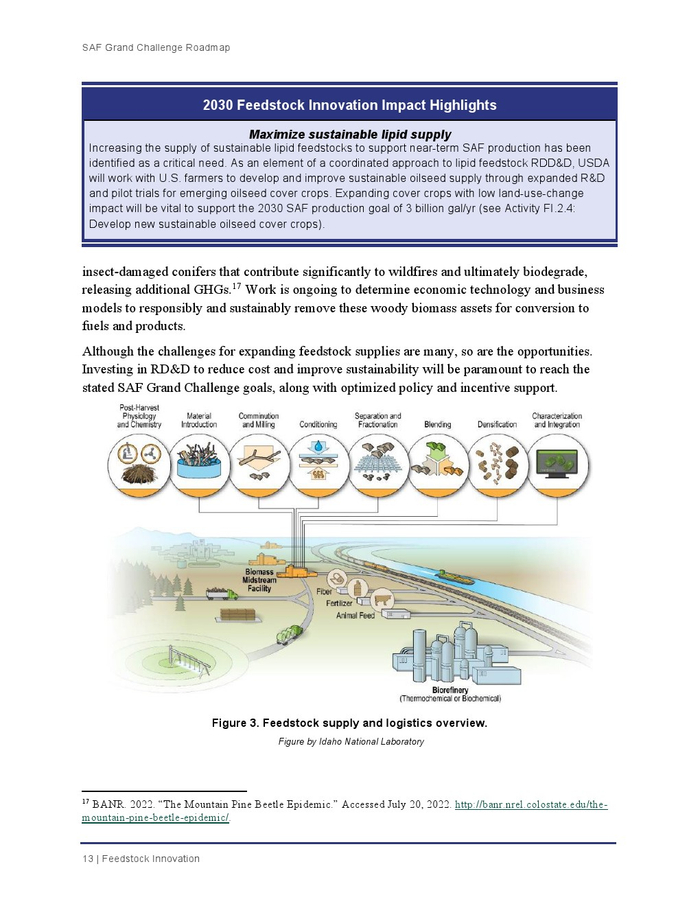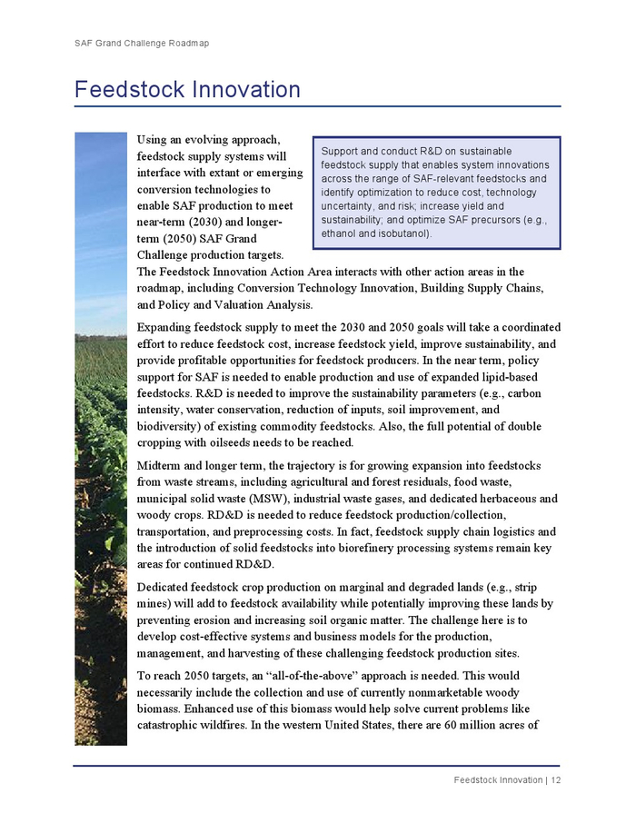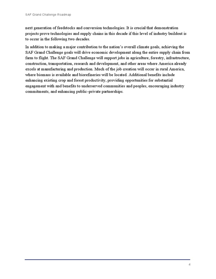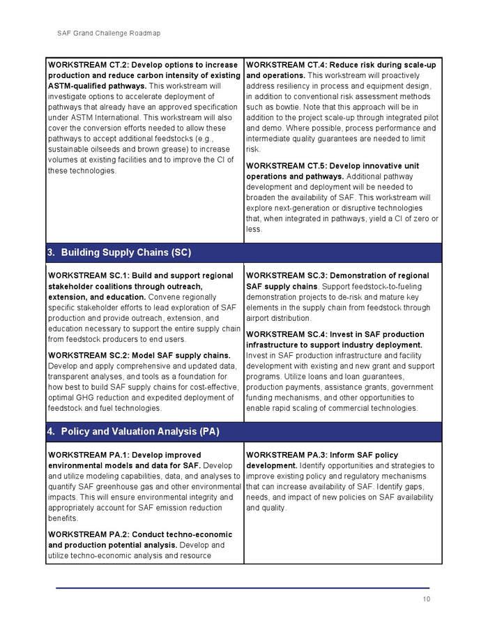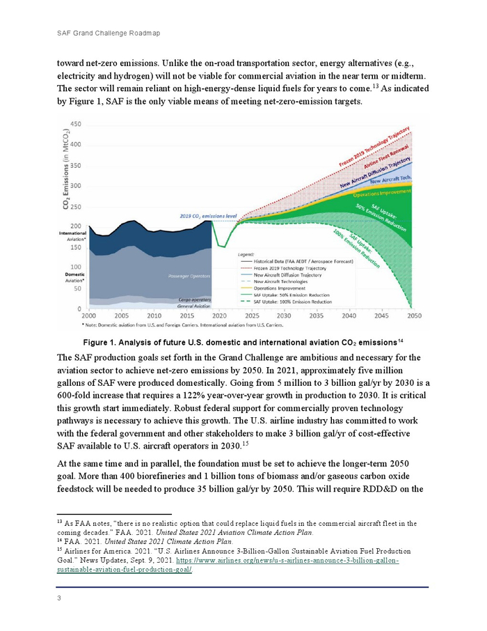 由DOE、DOT和USDA领导的跨部门团队与EPA、其他政府机构以及国家实验室、大学、非政府组织(NGO)以及航空、农业和能源行业的利益相关者合作,制定了SAF大挑战路线图。