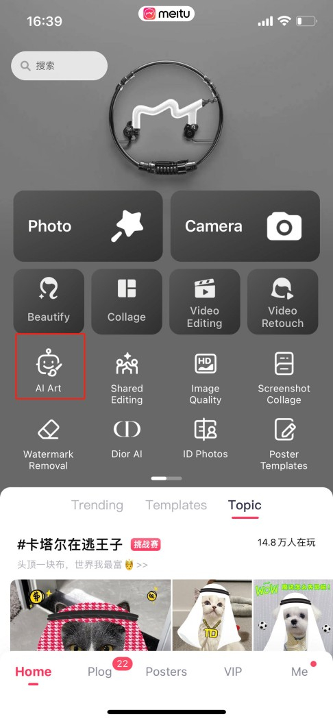 目前,AI 绘画被安排在附加功能的第 1 个入口,虽然 Meitu 对其多加宣传,但这个功能还处在测试阶段。