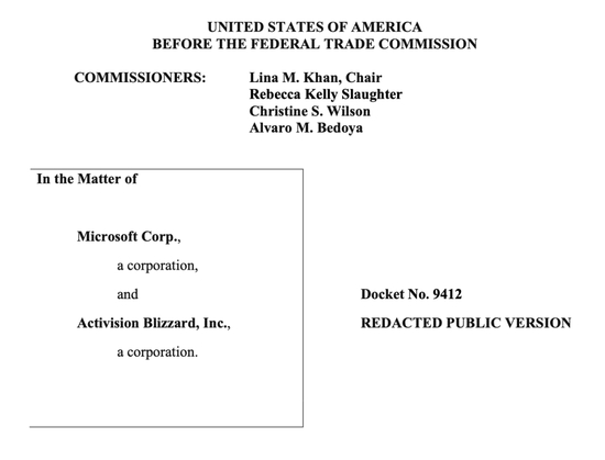 美国反垄断监管部门联邦贸易委员会(FTC)以3:1的表决结果,决定对微软收购动视暴雪的交易提出反垄断诉讼,要求行政法庭法官否决这一交易。