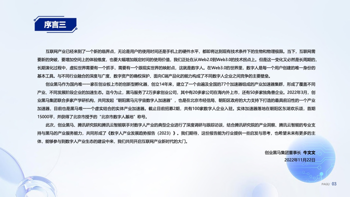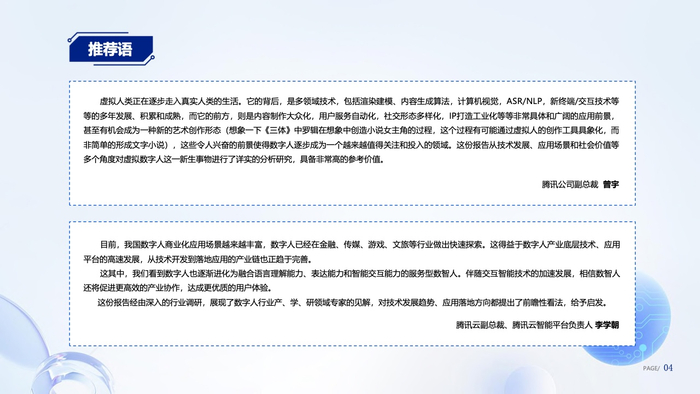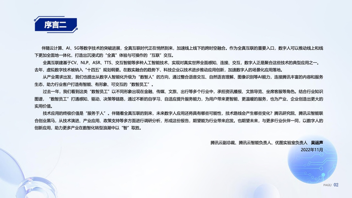 腾讯研究院、腾讯云智能和创业黑马合作,先后对数十家从事数字人的企业进行深度调研与跟踪访谈 ,分析产业发展现状,底层驱动力、未来方向和挑战等,形成《数字人产业发展趋势报告(2023)》。报告从数字人的价值定位、核心技术、行业应用、C端发展、产业聚集 等十个不同维度进行剖析,挖掘出产业发展的十大趋势。