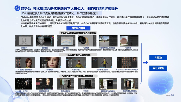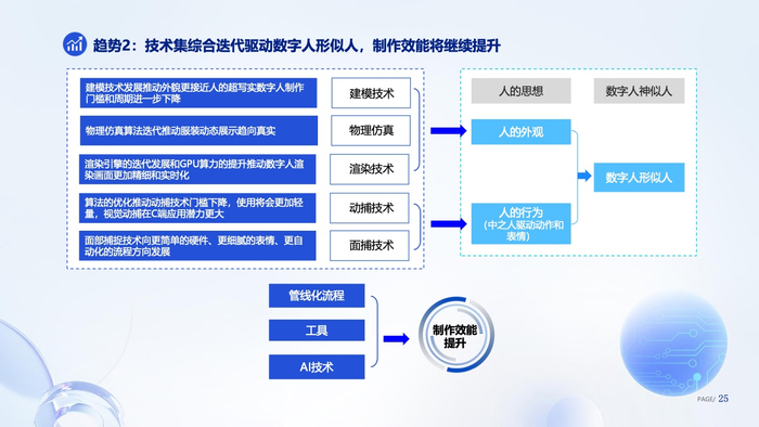 趋势2:技术集综合迭代驱动数字人形似人,制作效能将继续提升