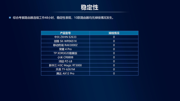稳定性:连续工作48小时,12款路由器均无掉线情况发生。