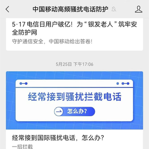 中国移动高频骚扰电话防护表示,因为骚扰电话花样多变,尽管很努力在更新号码库,仍然不排除会有漏网之鱼正好打到用户手机上,100% 的完美拦截难以实现。还是建议用户保留其中一种提醒功能。