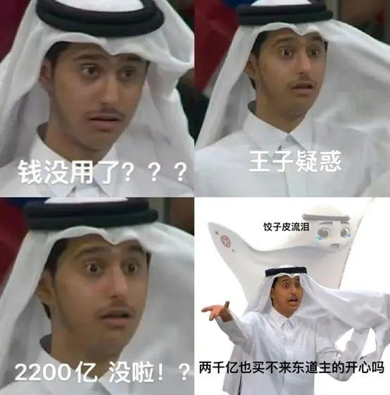 球赛之外的卡塔尔王室,投射了网友们对财富的野心和欲望。/表情包结合
