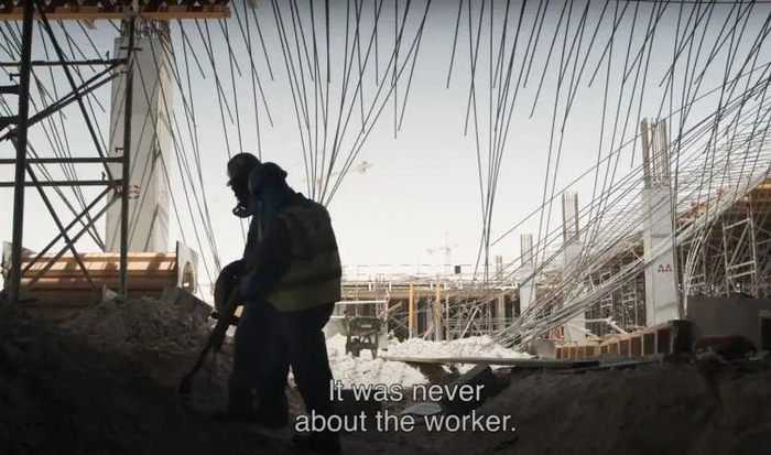 这些来自于世界各地的外籍劳工,是卡塔尔现代化奇迹的建造者。/《工人足球杯》剧照