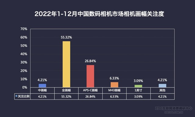 2022年1-12月中国数码相机市场相机画幅关注度(数据来源:ZDC)
