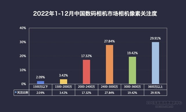 2022年中国数码相机市场相机像素关注度(数据来源:ZDC)