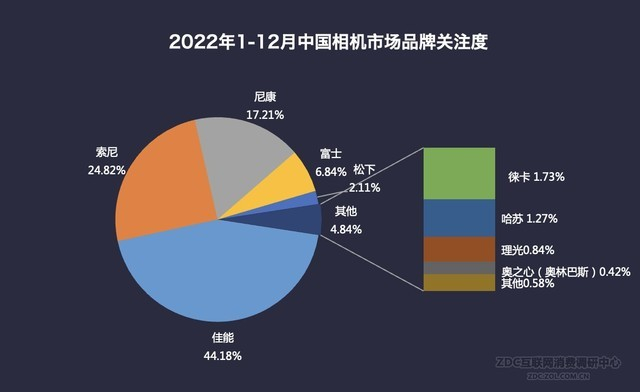 2022年1-12月中国相机市场品牌关注度(数据来源:ZDC)