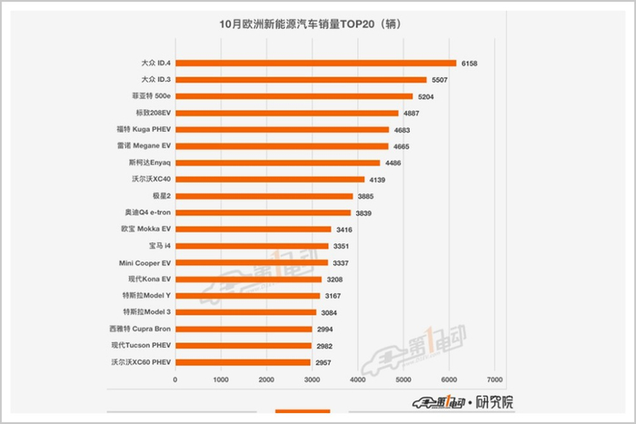 波云诡谲的是,10月欧洲新车销量的总冠军,也是大众的燃油车“高尔夫”;而9月的销冠特斯拉Model Y,直接被踢出了50名开外。