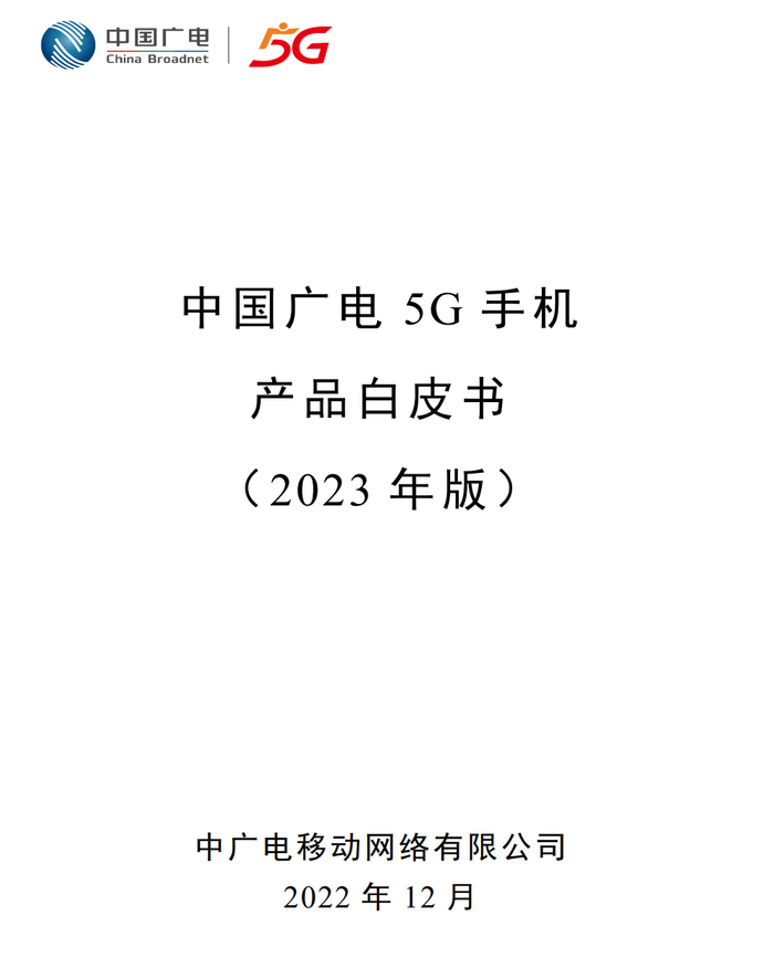 12月30日,中广电移动网络有限公司编制的《中国广电5G手机产品白皮书(2023 年版)》对外发布。根据说明,秉持融合、开放、创新的发展理念,中国广电为进一步引领终端和芯片产业链发展,推动700M产业链成熟,做好端网协同、共建共享,自2022年3月起每年将发布一版5G手机白皮书,本版本为2023年版白皮书。