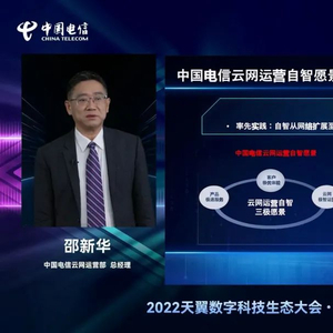 12月29日,2022天翼数字科技生态大会在云端开幕,同期举办的以“智慧运营赋能产数,卓越昆仑合作共赢”为主题的智慧运营合作论坛上,中国电信云网运营部(大数据和AI中心)总经理邵新华系统介绍了中国电信在云网运营自智领域的思考以及实践经验。
