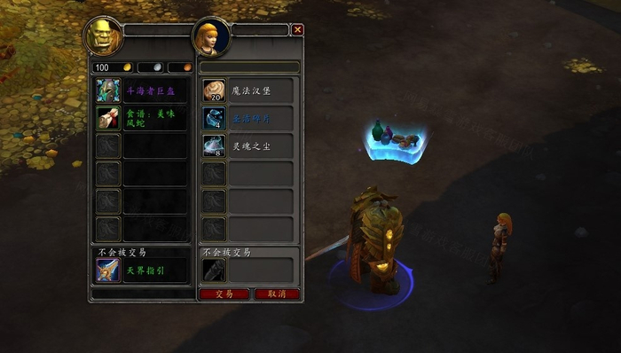 有两个小时可交易时间的战利品,金币,非灵魂绑定的制造配方与材料,装绑道具,魔法物品 (治疗石,法师面包),附魔灵魂绑定物品。