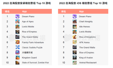 与此同时,全球移动游戏市场受全球宏观环境、疫情红利消退等因素影响,手游下载量、收入首次出现同比下滑,但纵观全年手游增量数据,全球手游买量市场表现仍处高位,且中国出海厂商表现稳步提升,出海产品趋于全面化、精品化,进一步抬高入局门槛,同时买量创意和运营策略都卷出了新高度。