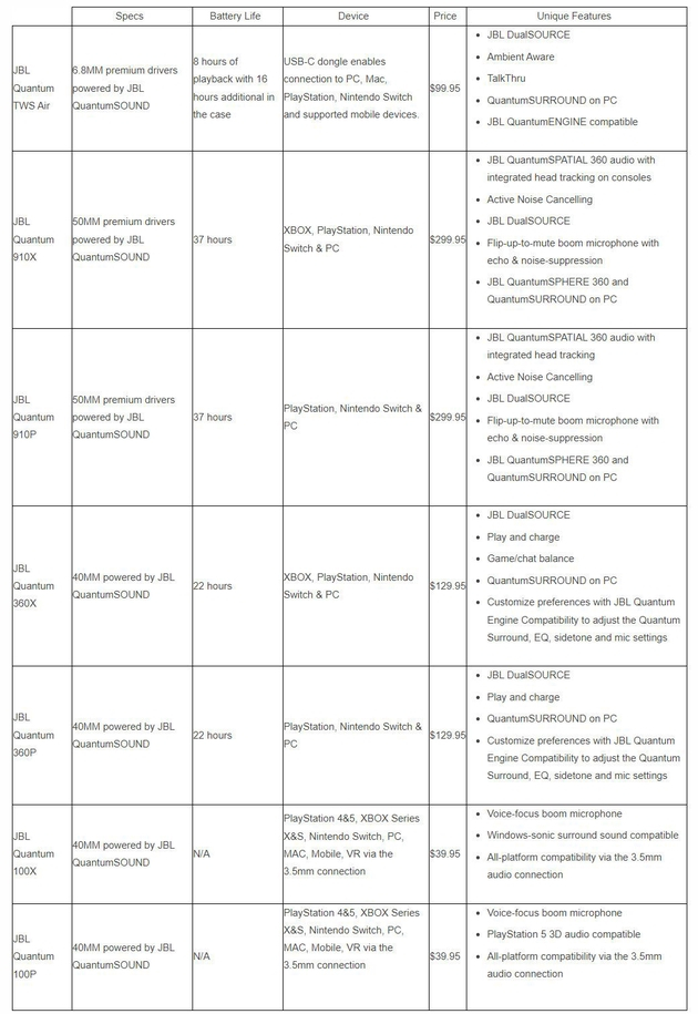 JBL 发布多款 Quantum 系列游戏耳机,售价39.95~299.95 美元