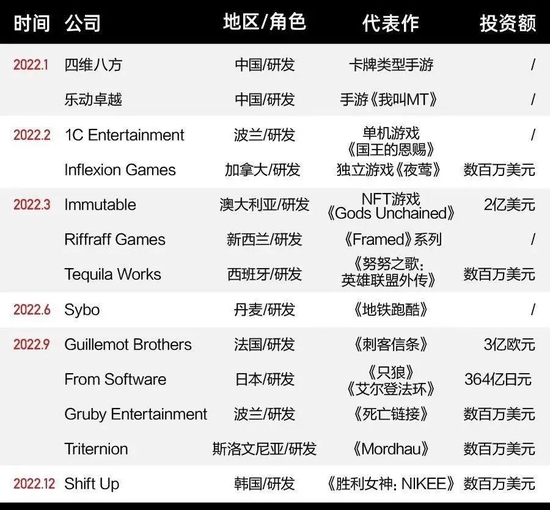 2022 年腾讯 13 起游戏领域投资并购