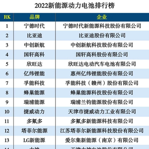 2022新能源动力电池排行榜:宁德时代、比亚迪、中创新航位居前三