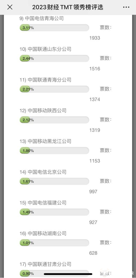 据了解,今年“2022年度优秀运营商省公司”成为热门评比选项,近百家运营商省公司踊跃参与投票,竞争程度最为激烈,短短几天时间内,投票情况千差万别。