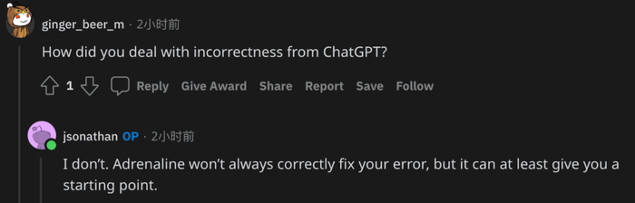 当然,ChatGPT 未必是完全正确的。有人问:如何处理来自 ChatGPT 的错误?