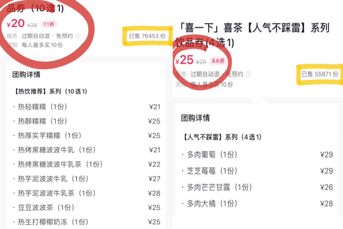 新茶饮变了,变“良心”了。1月8日,喜茶抖音旗舰店再度放出超低价团购,门店8元一杯的纯鸭喜香,达人直播间售价6.8元,同时降价的还有三款12至13元的产品,抖音旗舰店售价均为9.9元。