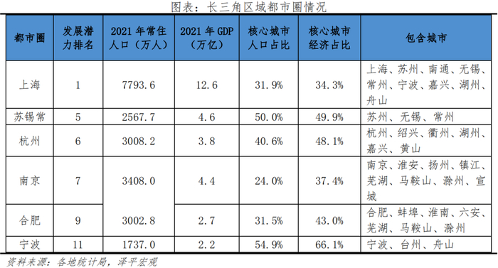 2.1 上海大都市圈:长三角城市群的“强核”,辐射周边都市圈
