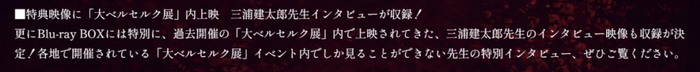 白泉社官方之所以用访谈录像作为圆盘特典,不遗余力地宣传它的珍贵,正是因为三浦近年来的访谈拍照都限于头部以下,已经很久没有露脸照片流出了,或许在他们的眼中,这对于粉丝来说是极具吸引力的内容。