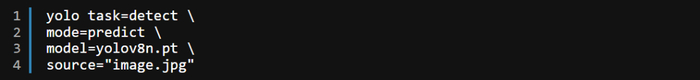 pip install ultralytics安装完所需的包后,用户就可以使用 yolo 命令进入 YOLOv8 CLI。下面是使用 yolo CLI 运行目标检测推理的示例: