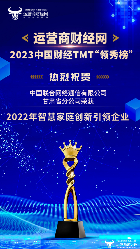 独家!甘肃联通荣获“2022年度智慧家庭创新引领企业”