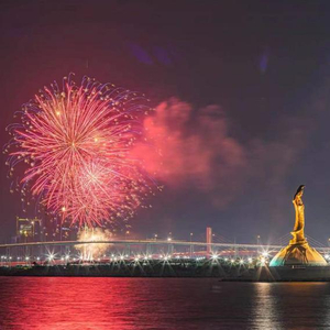 澳门旅游局举办的新年烟花表演,将分別于初三 (1月24日)、初七(1月28日),以及元宵佳节 (2月5日) 晚上在澳门旅游塔对面的海面上演,点亮夜空喜迎兔年。游客也可通过美团等平台预订含烟花观赏、小食、饮料在内的“花火大会”主题套票。