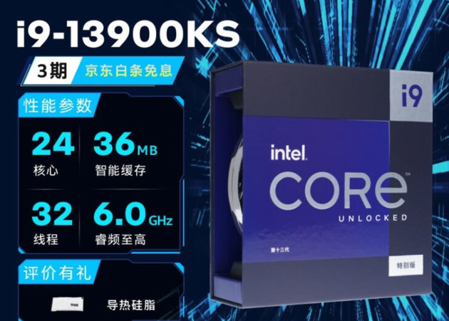 i9-13900KS 盒装处理器现已上架京东,标价 5999 元,到手价 5949 元。