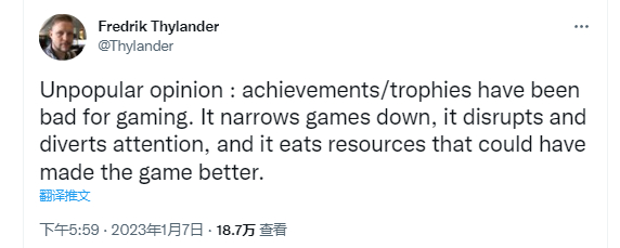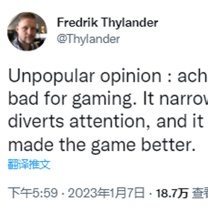 言归正传,Thylander在表达了对现有成就系统的不满后,认为“每个游戏都应该有更适合自己的奖励系统,而不是平台方强制要求的‘成就’。”