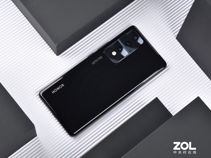 荣耀80 GT背部的镜头模组采用了矩形的设计,模组中间用一条金属线隔开,形成了一个数字“8”的形状,呼应了荣耀80的系列名称,还是相当具有辨识度的。