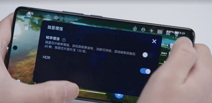 同样的,在《王者荣耀》《和平精英》等游戏中,iQOO Neo7 竞速版和荣耀80 GT的独立显示芯片同样支持利用独立显示芯片帮助GPU分担渲染算力的“优化功耗”模式。