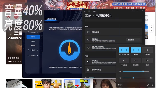 测试中,小新Pro 14的性能模式为智能模式,电源模式为最佳能效,音量40%,屏幕亮度80%,以模拟用户的日常使用环境。