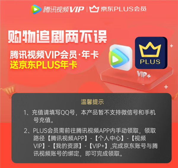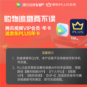 腾讯视频京东官方授权店,腾讯视频VIP年卡12个月送京东PLUS会员年卡12个月,下单可领10元券,到手148元。
